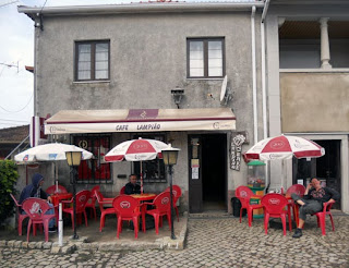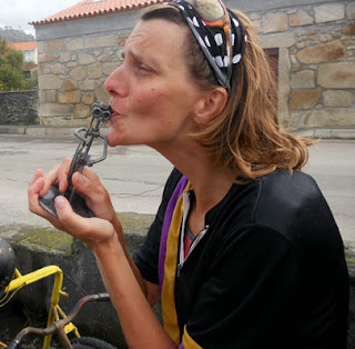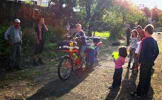 The man with the knife sharpening bicycle was already there and we got our knife sharpened with an audience of fascinated youngsters.