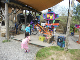 our first Kamishibai performance with accompanying pedal powered sound system at Yarde Orchard