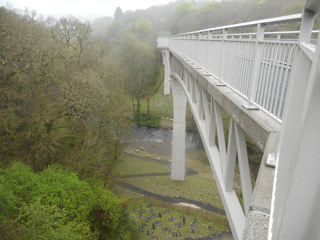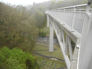 The brand spanking new bicycle bridge along the Drakes Trail. For some odd reason it's built on a slope...