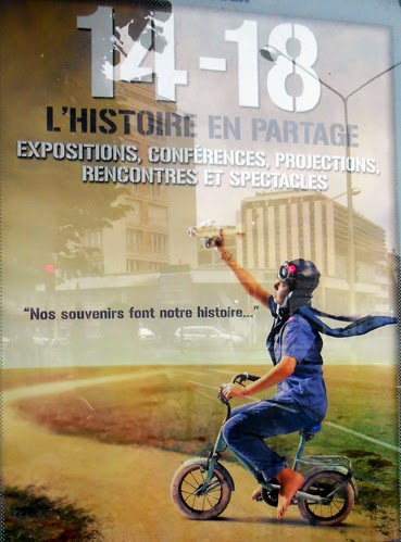 We’re in France again, greeted by a giant riding a bicycle and flying an aeroplane at the same time.