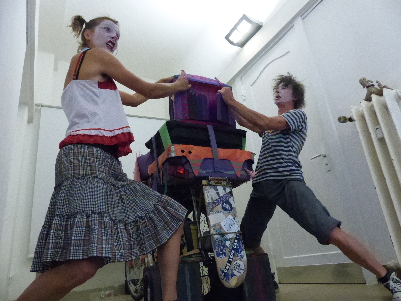 Because Sabine couldn't come to see our show at the Nonstop Schwitzen Bar, we played for her and some other invited guests in the Kreativikum, Per's headquarters... it felt like playing on a train, but actually it was the corridors of a madhouse...