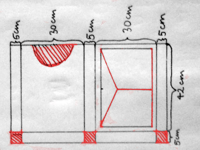 Step 1: draw out the kamishibai template onto your piece of cardboard with help of your pencil and ruler, transfering the masurements from the template onto your cardboard.